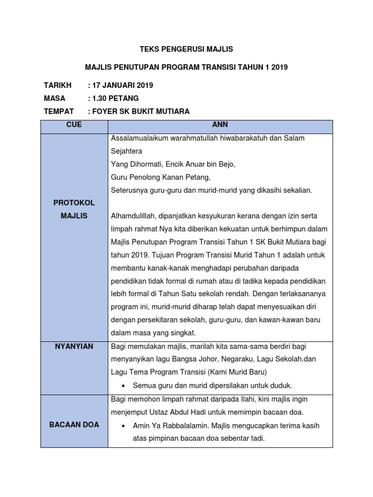Teks majlis rasmi penutupan perkhemahan sekolah rendahfull description. Mohamad fadzli bin khamis pelajar pismp 8.06 pengajian bahasa melayu ipg kampus pendidikan islam que. Mengumumkan ketibaan yang diraikan en. Teks pengacara program / bengkel. Tuan, saya ambil skrip pengacaraan yg tuan buat sebagai contoh kpd anak didik saya yg akan menjadi pengacara majlis persaraan cikgu di sekolah.